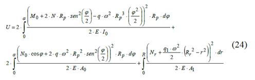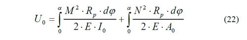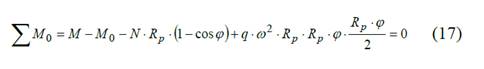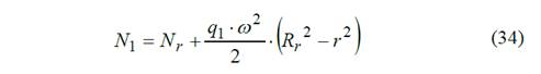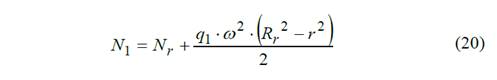 Con la fuerza del rayo Nr determinada por la Ec. 27, se puede calcular el momento flector en la sección transversal de la llanta M0, por la Ec. 25, y del mismo modo la fuerza normal en la sección transversal de la llanta N0, por la Ec. 26, la fuerza interna N y momento flector M que actúan en una sección cualquiera de la llanta n-n ver Fig. 7, se determinan por las expresiones 16 y 18 respectivamente, teniendo en cuenta que φ es la variable de control.