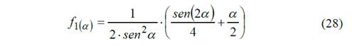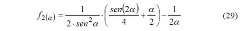Las variables f1(α) y f2(α) son funciones que caracterizan la cantidad de rayos del volante