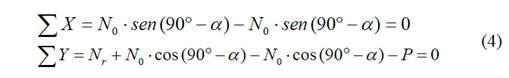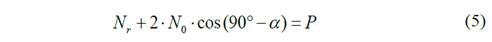 Debido a la simetría del sistema las fuerzas internas N0 de cada extremo son iguales. Trabajando con la otra ecuación la Ec. 4 se obtiene