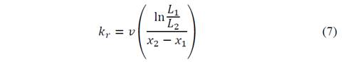 La estimación de la contante de remoción total de la DBO ( 𝑘 𝑟 ) se basó en la propuesta de Sierra (2013), que consistió en tomar las concentraciones de la DBO entre dos sitios de similares características hidromorfológicas, con la condición de que la DBO aguas arriba sea mayor que aguas abajo. La expresión matemática para calcula 𝑘 𝑟 se expresa como [9]: