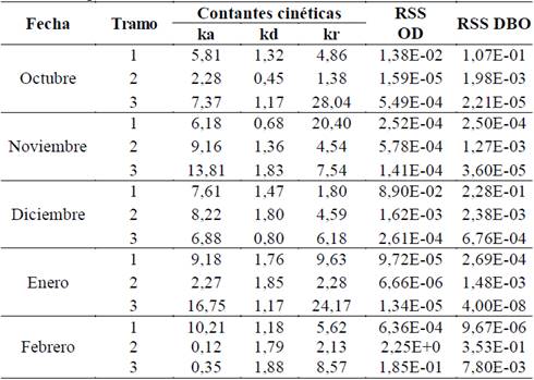 2.4.2. Determinación de las contantes cinéticas de desoxigenación, reaireación, y remoción total de la DBO