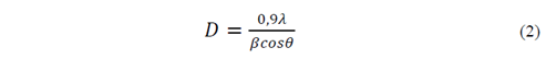 Where λ=1.5418 Å is the X-ray wavelength of the Cu radiation, β is the full width at half maximum of the major XDR peak (FWHM) in the plane (2 1 1) and θ is the diffraction angle in the maximum peak [7,18,19].