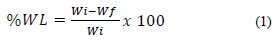 The same physicochemical parameters described in section 2.2 were evaluated on strawberries treated with EC, taking as reference the control parameter during the storage time. In addition, the loss of weight by gravimetry was determined by the difference between weights. The initial weight (Wi) minus the fruit weight at the end (Wf) of the storage was taken and the results were expressed as percentage of weight loss (% WL) by Eq. (1) [15]: