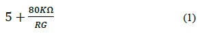In the amplification stage the INA126 was implemented for the amplification of the differential input between LL and RA potentials [14]. This device is characterized by its high input impedance, high CMRR, wide dynamic power range and low noise ratio. The gain ratio for this amplifier is 86 volts / volts, which is calculated from ec (1).