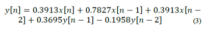 It consists of the treatment of the interest register from a difference equation calculated with Matlab's filter design and analysis tool and represented mathematically in equation (3), which describes the differences equation of a digital filter type IIR, low pass with cutoff frequency of 100Hz.