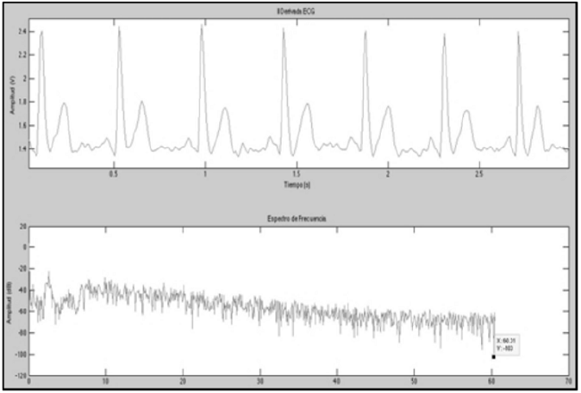 In the pre-amplification stage, second-order bandpass filters were designed and constructed to attenuate the voltage components with undesired frequencies, this stage has a lower cut-off frequency of 0.05Hz and a higher of 590Hz.