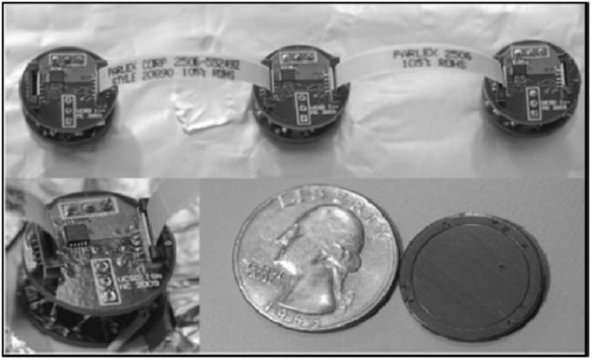 In addition to the integrated transducers in textiles, different kind of capacitive electrodes has been developed which improve the signal to noise ratio in the skin-electrode medium. This kind of sensor does not require an ohmic connection with the body, which offer numerous advantages such as no skin irritation or the usage of adhesive materials, because it does not need previous skip preparation before the registration [3,5,8,10]. These active electrodes allow signal recording and analogic processing in the same electronic board using only micro electronical components, [3,8] while each one of these electrodes have communication with the other ones by wire [3,8,10], additionally the transmission of the recording is realized wirelessly.
