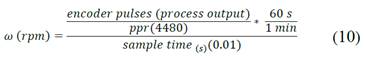 Equation (10) shows the formula used to determine the angular velocity of the motor using position measuring elements such as quadrature encoders:
