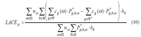 LACE of a new generation project p, namely LACEp , is defined as the annual cost change (ΔSp ) caused by the project per unit of energy (Ep ) it can produce during the year. Thus, LACE can be computed as: