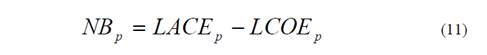 When LACEp > LCOEp , the project is attractive for the planer or investor since its levelized cost savings can cover the levelized cost. Otherwise, the project does not offer attractive features and might not be considered as a real expansion option. In general, the higher NBp the better.