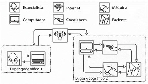 In the search for related studies, no references were found proposing an integral solution for the population with geographical vulnerability, which should consider aspects of synchronous remote operation, permanent monitoring of the patient by the specialist, implementation of active and passive treatments, patient comfort, anthropometry for the Colombian population, functionality, user safety, and traceability of the rehabilitation protocol, among others. In this context, the importance of this study lies in considering all these aspects, under the framework of one of the branches of telemedicine: remote operation. This would allow decentralizing the Colombian health system related to human rehabilitation, by extending coverage to the population with geographical vulnerability due to problems with access to specialized rehabilitation services [14].