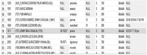 When the specialist is authenticated, this event is recorded in the database, as shown in Fig. 20. The database provides information of the authenticated person: their specialty, their last access, and the IP address of the access point; this allows monitoring of the specialists and assistants who perform telemedicine tasks in the respective hospitals.