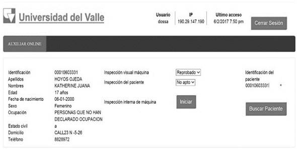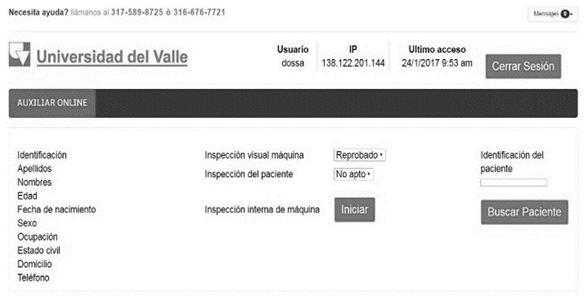 The assistant performs the same procedure as the specialist in terms of registration. Once registered in the assistant's interface, the following data appear: user, IP, date, last access, and a prompt to enter the identity document of the incoming patient. The requested information is shown in Fig. 23.