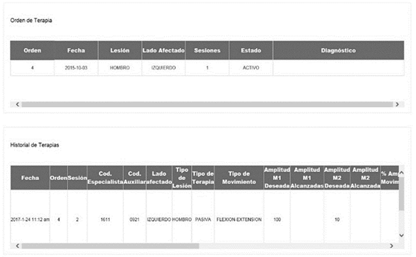 The information entered into the database allows the specialist to have traceability of the rehabilitation processes of their patients; in addition, remote access to the information recorded in the database is possible.