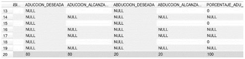 Once the treatment is finished, the database is updated, and the desired data are compared with the range of motion achieved by the patient during treatment. Fig. 29 shows the entry of this information in the database with the success rate of treatment implementation.