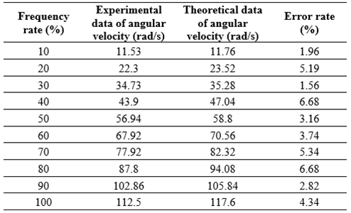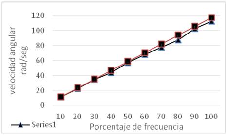 The speed reference will be given in degrees per second; however, motor speed control requires a reference in frequency rates. Next, the data and the graph obtained from the power unit are shown.