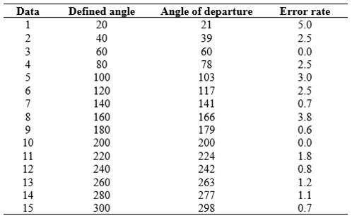 It was necessary to test the power system regarding its instrumentation for measuring the angular position at the output of the power unit because these data are essential for recording and updating the rehabilitation treatments in the patient medical records. Calibration of the linear potentiometer was performed by measuring potentiometer voltage versus its angular position; the results were plotted and are shown in Fig. 5. The function obtained in Equation 1 was used in programming the microcontroller, to obtain the desired angular position in degrees (º).