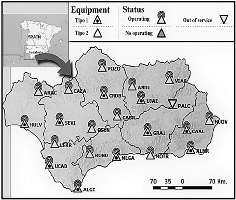 In summary, the area of study proposed is within the Andalusia Positioning Network, in southern Spain and to the north of the province of Córdoba, as can be seen in Fig. 2.