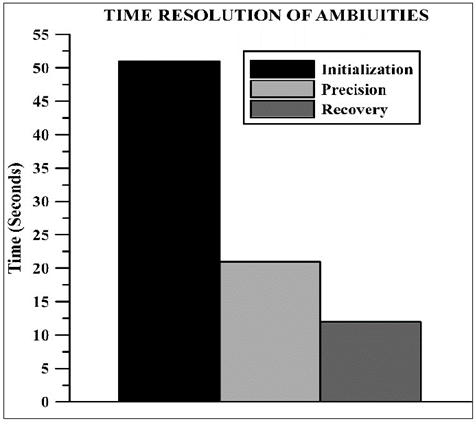 The time a piece of equipment needs to resolve ambiguities depends on a number of factors that can be difficult to determine a priori, such as: distance from the base station, number of satellites observed, algorithm used by the manufacturer, possible loss of cycle during the calculation process, etc.