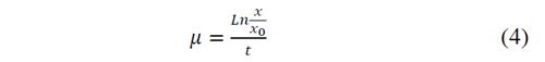 The specific speed growth calculations were made using the analytical techniques data (μ) which depends of the limiting substrate concentration (glucose) and the microorganism growth over time (eq. 4) [12].