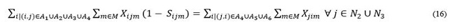 Eq. (16)-(19) are flow conservation constraints. The amount of product arriving at a destination node must be equal to the flow minus the proportion of product lost on the arc depending on the mode of transportation: