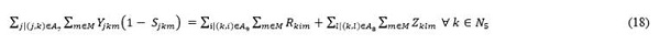 The following constraints coordinate the decision variables. Eq. (10) forces that if an arc is used, the associated nodes must be used: