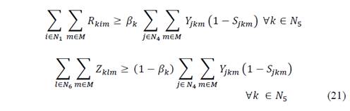 Eq. (21) and (22) guarantee that the products fraction must be sent from the collection centers to the nodes of origin and to the destruction centers: