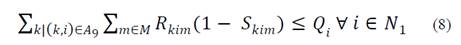 Also, the SC has limited capacities. Thus, eq. (5) limits the reception capacity of products at each node.