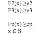 Consider the following multi-objective problem where x ∈ S, is a decision variable vector in the search space S. Let f1 (x),.., Fp (x) be objective functions.