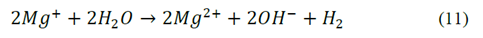 Además de las reacciones anteriores, los ánodos de magnesio pueden producir hidrógeno durante su polarización. Esto se denomina efecto diferencial negativo y es particular del magnesio [15].