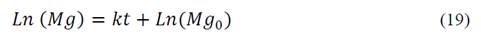 La cinética de electrodisolución de magnesio para todas las condiciones de proceso, se determinó ajustando los datos de concentración de magnesio vs tiempo a la ecuación (19), según lo reportado por Panaiotova [20]: