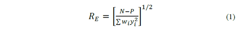 Donde N es el número de puntos medidos, P es el número de parámetros que se están refinando, yi es la intensidad medida en el paso i, y wi = 1/yi .