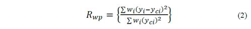 Donde yci es la intensidad calculada en el paso i. Unos buenos resultados llevan a un valor de Rwp entre 2 y 10% [22]. Y finalmente,