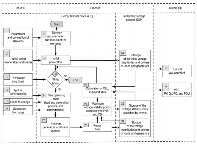 The process presented in Fig. 1 can be divided into two parts. The first part corresponds to the calculation of the initial values of the power system (from P1 to P2). The second part corresponds to the calculation of the VSL of the power system (from P3 to P8).