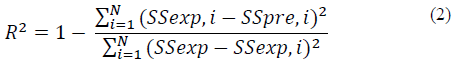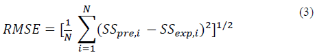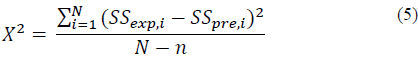 Where SSexp,i is the experimental shear stress found in any measurement and SSpre,i is the shear stress predicted for the measurement under consideration. N and n are the number of observations and the number of constants respectively.