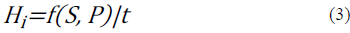 The equation means that the hazard (H) is a function of the susceptibility (S) and of the probability (P) of occurrence of the phenomenon or destructive event.