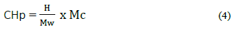 Donde, H es la pérdida de masa asociada con la deshidroxilacion del Ca(OH)2, Mw es la masa molecular del agua y Mc es la masa molecular del Ca(OH)2,