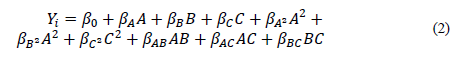 are interaction coefficients. Adequacy of the models was determined using lack of fit test and regression coefficient (R2). In addition, analysis of variance (ANOVA) was performed with a significance level of 5%. The analysis of results and optimization were performed using Statgraphics Centurion XVI.II software.