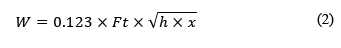Esfuerzo por cada 1.000 lb en poste cargado: Este parámetro se calcula dividiendo el módulo de rotura del concreto entre un factor de seguridad y luego dividiendo el resultado entre la carga del poste en kips (1 kpi = 1.000 lb). El factor de seguridad se recomienda entre 1.7 y 2.0, el valor más alto se recomienda cuando los racks son independientes y su altura es inferior a 35 pies.