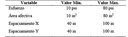 En la Tabla 4 se presentan los rangos de evaluación de estos parámetros considerados durante el muestreo LHS.