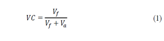 El proceso de mezclado del llenante mineral y los productos asfálticos también se realizó a las temperaturas de mezclado indicadas en la Tabla 1. El llenante mineral se precalentó por un mínimo de 6 horas y luego, el mezclado con el producto asfáltico se llevó a cabo a 1000 rpm por 15 minutos sobre placa calentadora para garantizar temperatura constante (i.e., durante los 10 minutos iniciales se adicionó el llenante mineral y los últimos 5 minutos permitieron la homogeneización del mástico). Los másticos fueron dosificados por concentración volumétrica de llenante mineral, VC; estas concentraciones fueron calculadas según la ec. (1), en función de los volúmenes de llenante mineral, Vf , y ligante asfáltico, Va.