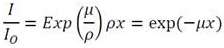 is the incident x-ray intensity, I is the intensity remaining after passing through a thickness