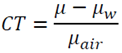 will depend mostly on the electron density related to the bulk density. In practice, µ is converted into a new scale based in an international standard unit of Housefield called the CT number and it is defined in eq.4. On this scale, water has a value of zero and air has a value -1000 [27].