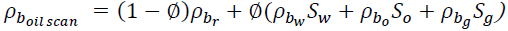 That correlation allows to convert the CT numbers of each voxel to bulk density value. With these values of bulk density is possible to estimate the porosity and fluid saturation distribution in the porous medium with water, oil and gas, solving the following equations (6-9).