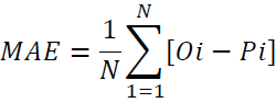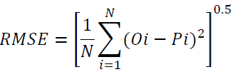 For this, we used the mean absolute error (MAE), root mean square error (RMSE); paired t-test at significance of 5%, Willmott concordance test [17], Nash-Sutcliffe efficiency index (ENS), Pearson linear correlation, and Camargo-Sentelhas performance index [18], which is the result of the product of the Pearson correlation coefficient (r) and the Willmott accuracy index (d). The values were obtained respectively by: