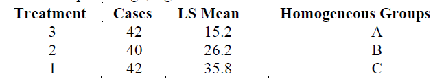 In other words, for each degree range of difference, between treatment 1-2, there was a dry weight loss of dry grain per plant of 17%, and between 1 and 3 of 56% (Table 3). These results are similar to other studies [20], where the dry grain losses per plant were 12% and 49%, when it was only irrigated with 80% and 60% of the total evapotranspiration, respectively.