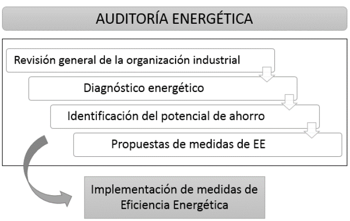 La Auditoría Energética (AE) se ha convertido en una herramienta fundamental para la identificación y priorización de oportunidades para mejorar la eficiencia energética, reducir el desperdicio de energía y obtener beneficios ambientales relacionados. El mayor referente de la AE es la norma ISO 50002, que define el conjunto de requisitos mínimos que se deben desarrollar para la identificación de oportunidades de mejora de la EE. Ésta es útil para la revisión energética que plantea ISO 50001 y para facilitar el seguimiento, medición y análisis de los sistemas de gestión, o puede ser utilizada de manera independiente por una organización que desee identificar las oportunidades de mejora de la EE y desarrollar planes de acción puntuales mediante la contratación de una Empresas de Servicios Energéticos (ESEs) o de manera individual [23]. Sin embargo, el estándar se queda corto en los detalles de cómo realizar la AE en una organización principalmente de tipo industrial, implicando que el desarrollo y éxito de la misma quede sujeta a la experticia o experiencia con la que el auditor o ESE cuenten para el levantamiento y análisis de la información necesaria para el desarrollo de la AE.
