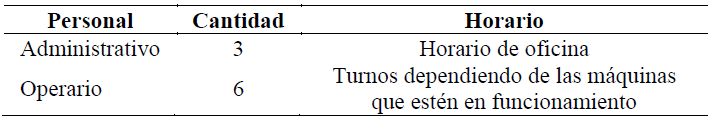 La empresa EPO Ltda. cuenta con 9 empleados distribuidos entre la planta industrial, donde se encuentra la infraestructura de producción y el área administrativa, (ver Tabla 1).