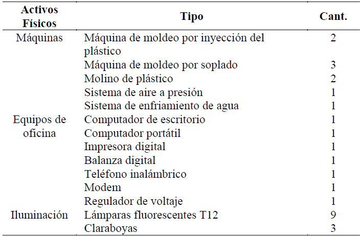 Los activos físicos de EPO Ltda. están compuestos por máquinas, equipos de oficina y el sistema de iluminación (ver Tabla 2).