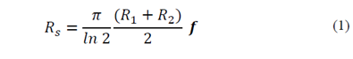 where R1 and R2 are resistance measurements interchanging the current and the voltage electrodes and f is a constant with a value near one.